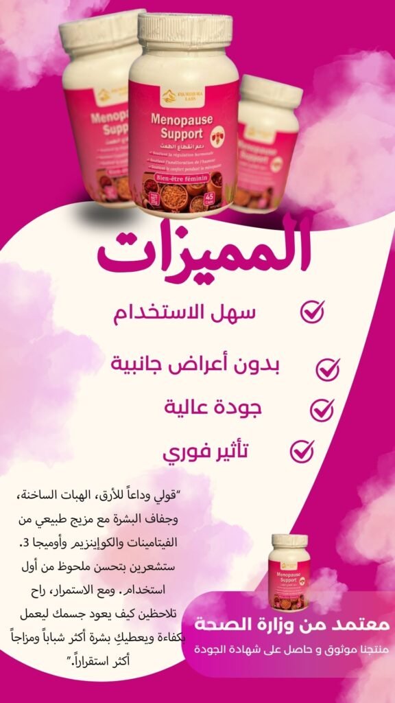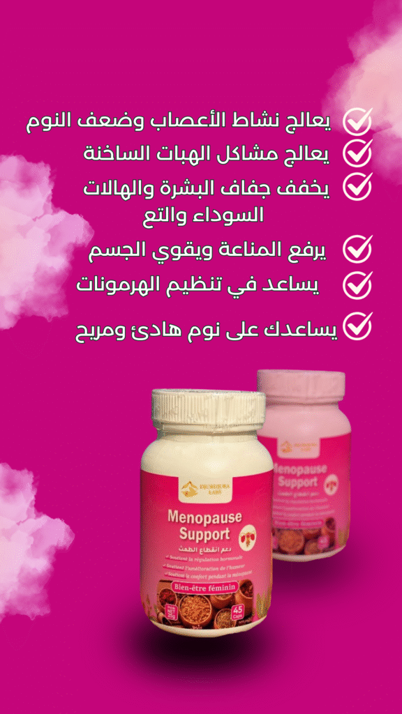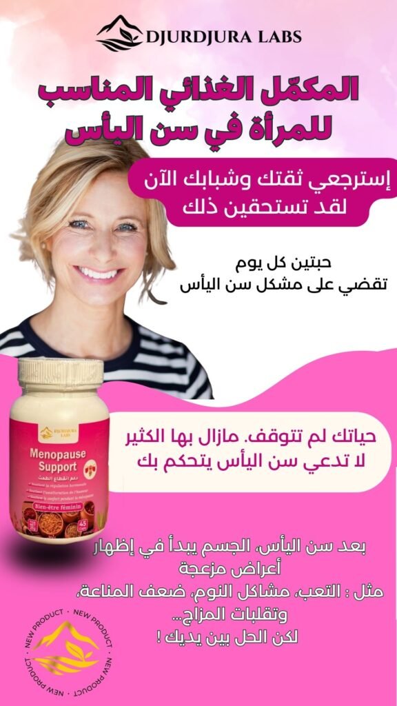 للطلب أضف معلوماتك في الأسفل 👇 اختر الولاية...01 Adrar - أدرار02 Chlef - الشلف03 Laghouat - الأغواط04 Oum El Bouaghi - أم البواقي05 Batna - باتنة06 Béjaïa - بجاية07 Biskra - بسكرة08 Bechar - بشار09 Blida - البليدة10 Bouira - البويرة11 Tamanrasset - تمنراست 12 Tébessa - تبسة 13 Tlemcene - تلمسان14 Tiaret - تيارت15 Tizi Ouzou - تيزي وزو16 Alger - الجزائر17 Djelfa - الجلفة18 Jijel - جيجل19 Sétif - سطيف20 Saïda - سعيدة21 Skikda - سكيكدة22 Sidi Bel Abbès - سيدي بلعباس23 Annaba - عنابة24 Guelma - قالمة25 Constantine - قسنطينة26 Médéa - المدية27 Mostaganem - مستغانم28 MSila - مسيلة29 Mascara - معسكر30 Ouargla - ورقلة31 Oran - وهران32 El Bayadh - البيض33 Illizi - إليزي 34 Bordj Bou Arreridj - برج بوعريريج35 Boumerdès - بومرداس36 El Tarf - الطارف37 Tindouf - تندوف38 Tissemsilt - تيسمسيلت39 Eloued - الوادي40 Khenchela - خنشلة41 Souk Ahras - سوق أهراس42 Tipaza - تيبازة43 Mila - ميلة44 Aïn Defla - عين الدفلى45 Naâma - النعامة46 Aïn Témouchent - عين تموشنت47 Ghardaïa - غرداية48 Relizane- غليزان49 Timimoun - تيميمون50 Bordj Baji Mokhtar - برج باجي مختار51 Ouled Djellal - أولاد جلال52 Béni Abbès - بني عباس53 Aïn Salah - عين صالح54 In Guezzam - عين قزام55 Touggourt - تقرت56 Djanet - جانت57 El MGhair - المغير58 El Menia - المنيعة اختر البلدية... - + اطلب الآن ملخص الطلب Ménopause support x1 د.ج2,000.00 سعر الشحن - السعر الإجمالي د.ج2,000.00